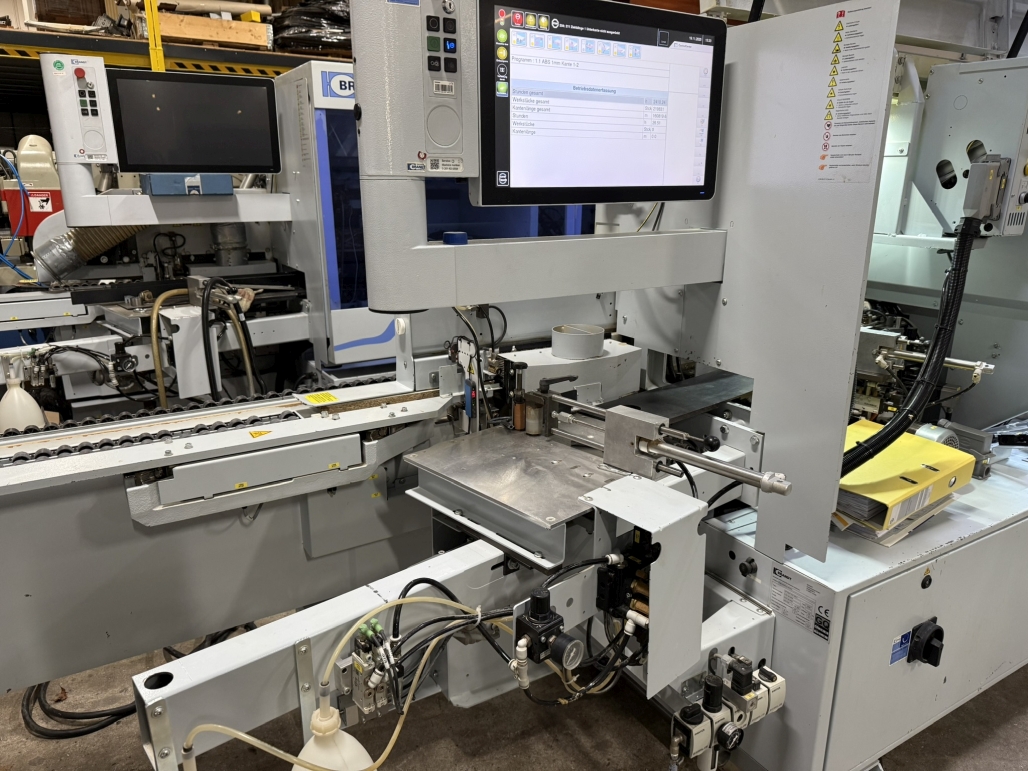 - Einseitige Kantenanleimmaschine zum Bearbeiten von geraden Werkstückkanten und zum Anleimen und Nachbearbeiten von verschiedenen Kantenmaterialien in Längs- und Querdurchlauf mit automatischer Verstellung erst 1500 Betriebsstunden